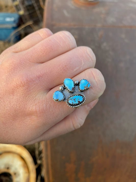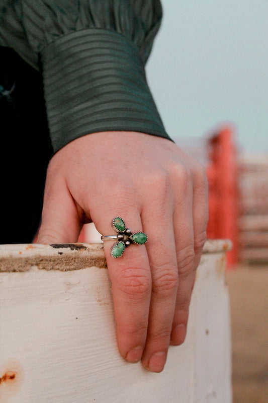 Just a turquoise infatuated girl who decided one day to buy a torch and teach herself how to silversmith. I'm Savannah Jensen, from Western Nebraska. I'm a follower of Jesus Christ, besides being behind the metal bench you'll find me in the roping arena, I'm a dog mom to a three legged border collie, named Brady. Growing up if I had an idea I just went for it and it was always head first.