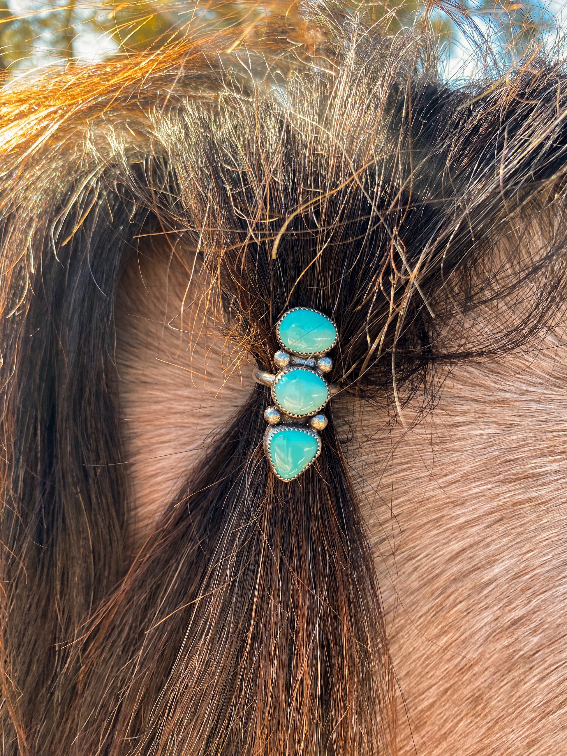 Icy blue ring set with lone mountain blue stones, this ring is a size 7.